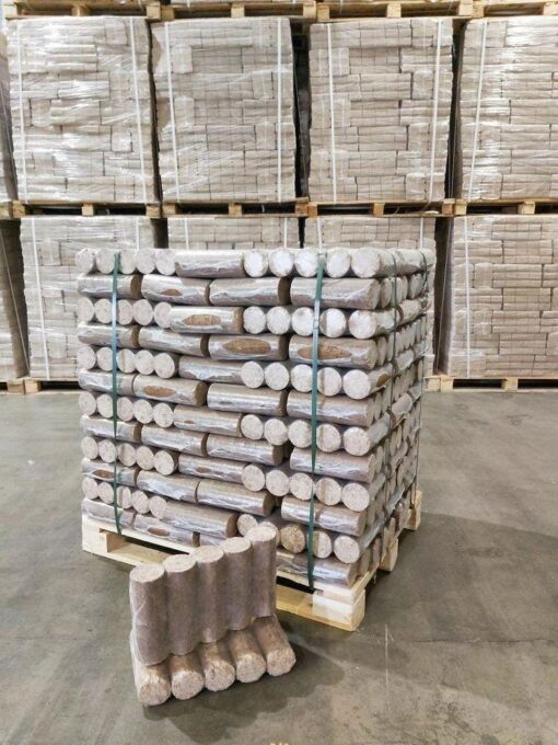 De prijs is per pallet. De pallet bevat 96 pakken briketten, elk 10 kg +/- 5%.
