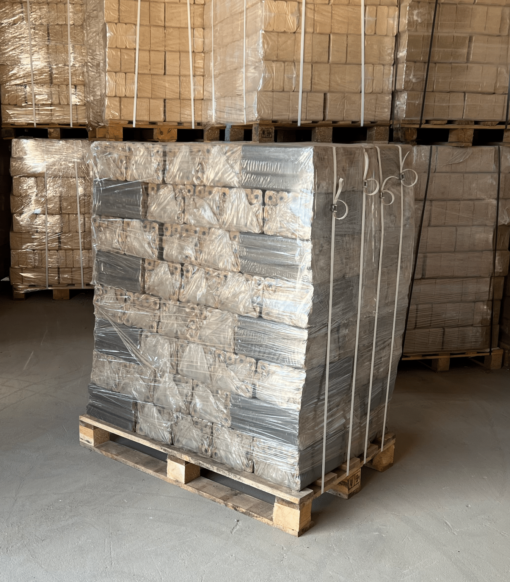 De prijs is per pallet. De pallet bevat 96 pakken briketten, elk 10 kg +/- 5%.